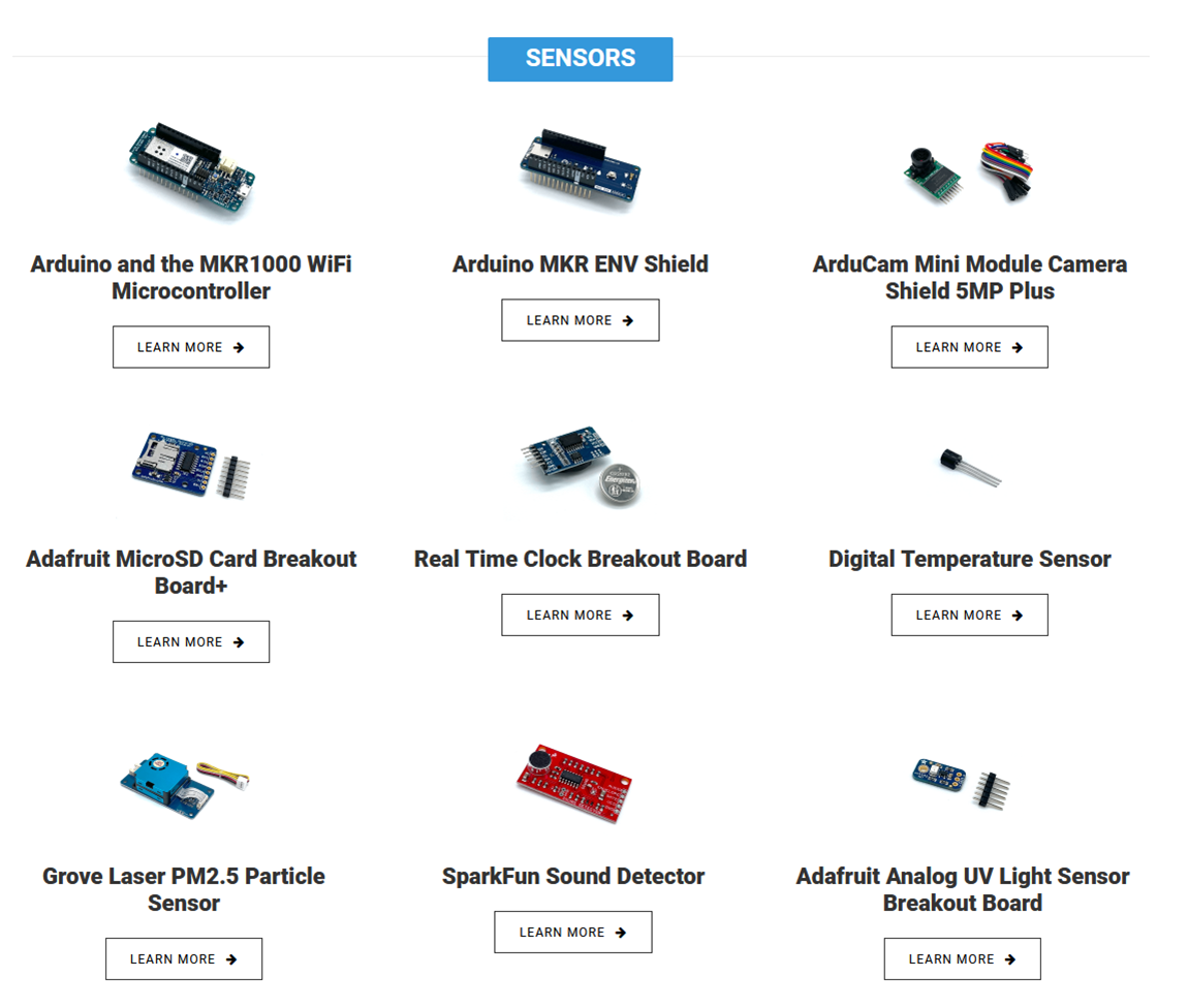 [모두의 아두이노 환경 센서] 책은 예스24, 인터넷 교보문고, 알라딘, 인터파크도서, 영풍문고, 반디앤루니스 , 도서11번가 등에서 구입할 수 있다. 이 책에서는 PMS7003, GP2Y1010AU0F, PPD42NS, SDS011 미세먼지 센서, DHT22 온습도 센서, MH-Z19B 이산화탄소 센서, ZE08-CH2O 포름알데히드 센서, CCS811 총휘발성유기화합물 TVOC, GDK101 방사선(감마선) 센서, MQ-131 오존(O3) 센서, MQ-7 일산화탄소, MICS-4514 이산화질소 센서, MICS-6814 암모니아 센서, DGS-SO2 아황산가스(SO2) 센서, BME280 기압 센서, GUVA-S12SD 자외선(UV) 센서, MD0550 기류 센서, QS-FS01 풍속 센서(Wind speed) 를 사용한다.