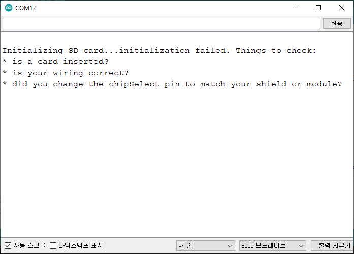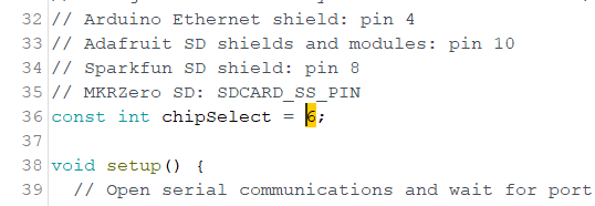 02. 코드에서 "if (!SD.begin(4)) {"를 찾아 4를 6으로 변경한다.