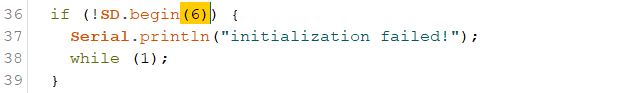 02. 코드에서 "if (!SD.begin(4)) {"를 찾아 4를 6으로 변경한다.