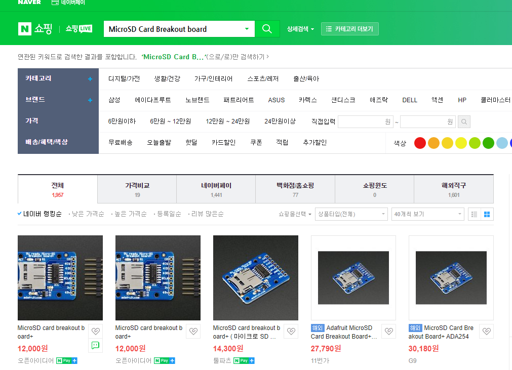 [MicroSD Card Breakout board]는 알리익스프레스, 네이버 쇼핑몰, 아마존 등에서 센서를 구입할 수 있다