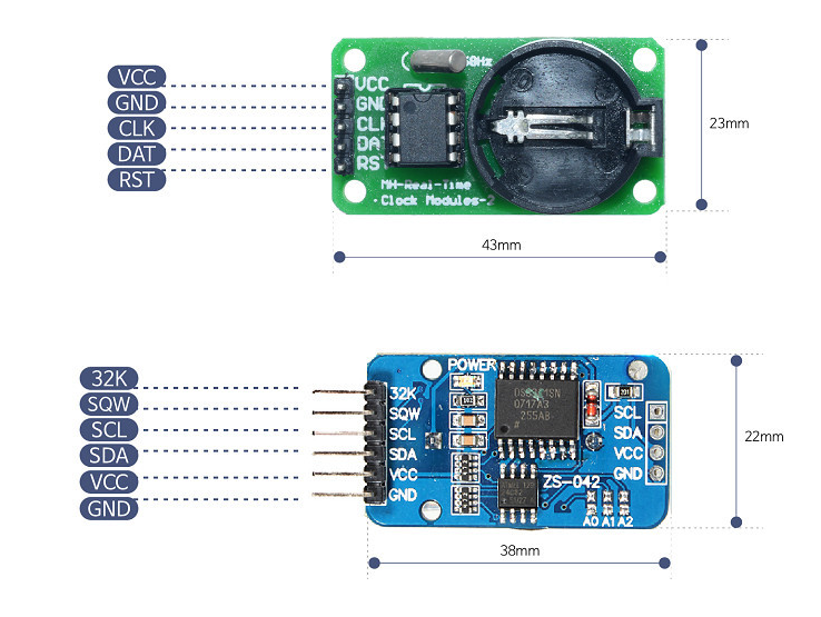 RTC는 시계이다. 고정밀 DS3231RTC칩을 사용한 리얼타입 클럭 모듈이다. CR2032 배터리가 포함되어 있어, 전원이 공급되지 않아도 시계가 동작한다.