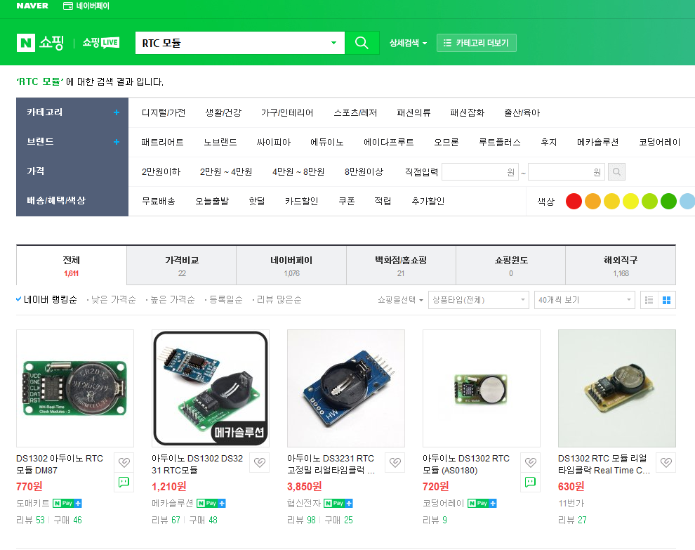 RTC모듈은 네이버등에서 다음과 같다.