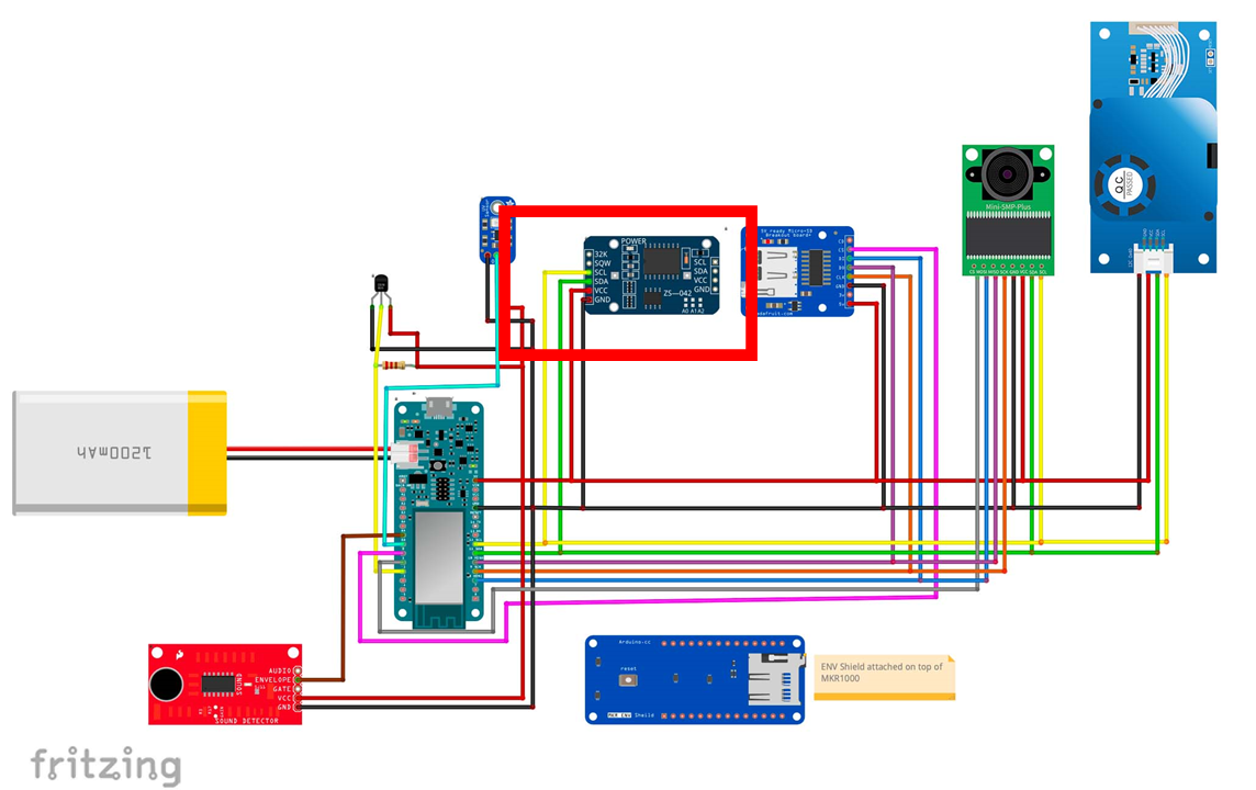 MKR1000 과 연결하기 위해 I2C 핀을 사용한다.