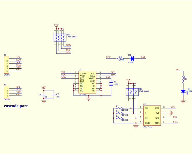 10. IIC 다른 장치는 계단식으로 연결될 수 있으며 24C32 주소는 단락 A0/A1/A2에 의해 수정될 수 있으며 기본 주소는 0x57 이다.