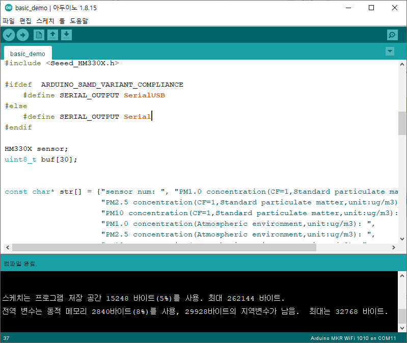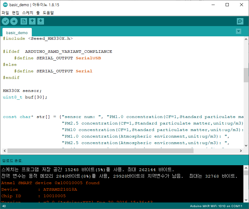 아두이노와 HM3301 센서를 연결하고, 간단한 코딩으로 센서를 쉽게 실습할 수 있다.