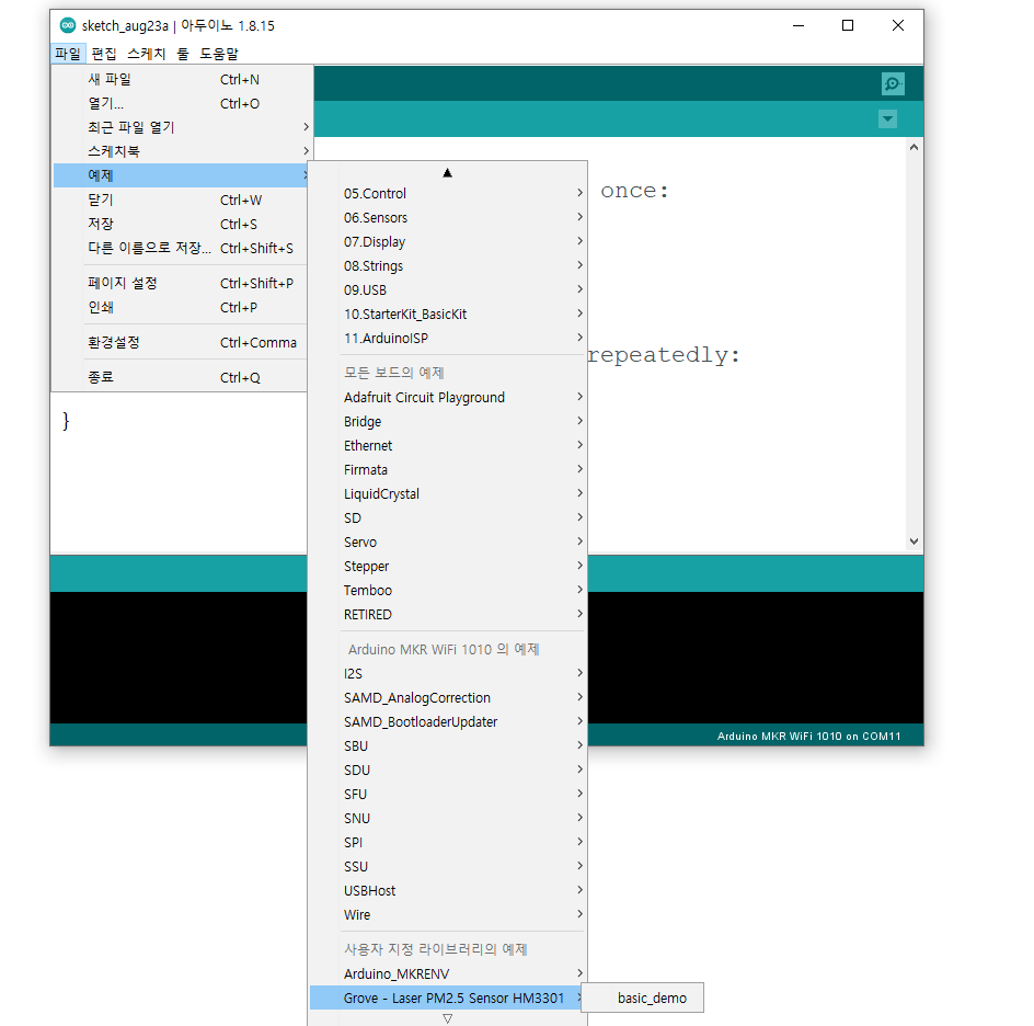 다음과 같이 HM3301 아두이노 센서를 연결할 수 있다.