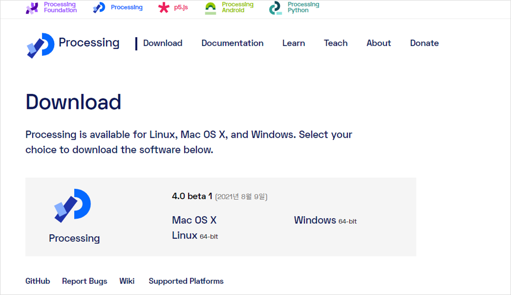 Processing 프로그램은 https://processing.org/download/에서 다운로드할 수 있습니다.